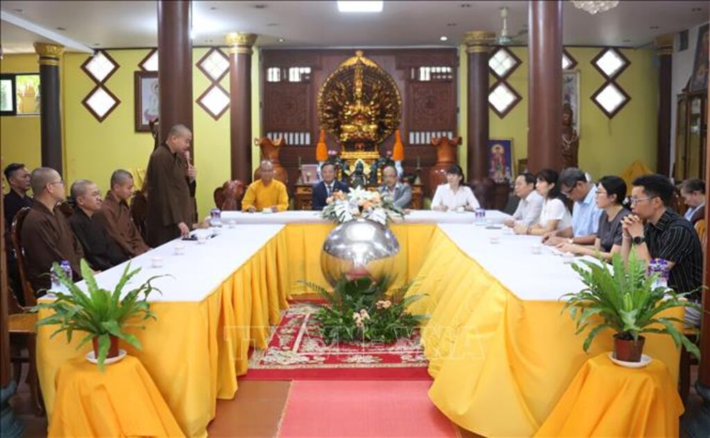 Tiếp đón đoàn, Thượng tọa Thích Minh Quang, Trưởng Ban Điều phối hợp tác Phật giáo Việt Nam tại Lào, Trụ trì chùa Phật Tích thủ đô Viêng Chăn, đã khái quát về quá trình hình thành, phát triển và các hoạt động nổi bật của chùa trong những năm qua. Theo Thượng tọa Thích Minh Quang, chùa Phật Tích không chỉ là một địa điểm sinh hoạt văn hóa tâm linh cho bà con kiều bào mà còn là "mái nhà chung" nơi cộng đồng người Việt tại Viêng Chăn nói riêng và tại Lào nói chung thường xuyên lui tới để tìm lại bản sắc văn hóa dân tộc, giữ gìn truyền thống và nuôi dưỡng tinh thần hướng về quê hương.