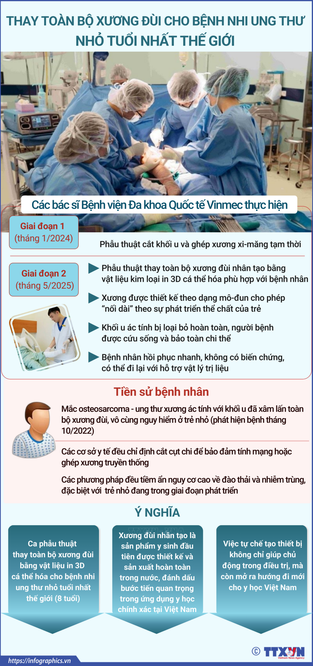 | Thay toàn bộ xương đùi cho bệnh nhi ung thư nhỏ tuổi nhất thế giới |