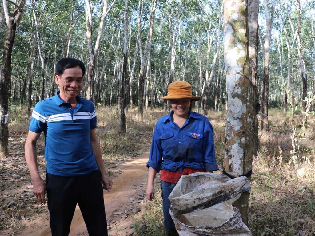 Còn ông Điểu Thành (dân tộc S’tiêng, xã Minh Đức) trước đây chủ yếu kiếm sống bằng công việc làm thuê theo thời vụ nên không ổn định. Từ khi làm công nhân cạo mủ cho mô hình của ông Giàng, ông Điểu Thành đã có nguồn thu nhập ổn định hằng tháng. Ông Thành cũng như nhiều người được ông Giàng thuê luôn được quan tâm, tạo điều kiện tốt nhất để làm việc hiệu quả. Nhờ có việc làm ổn định, nhiều gia đình tại địa phương đã có cái ăn, chăm lo cho con cái đi học đầy đủ.