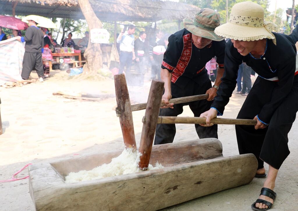 Thi giã bánh giầy của đồng bào dân tộc Mông ở Lai Châu