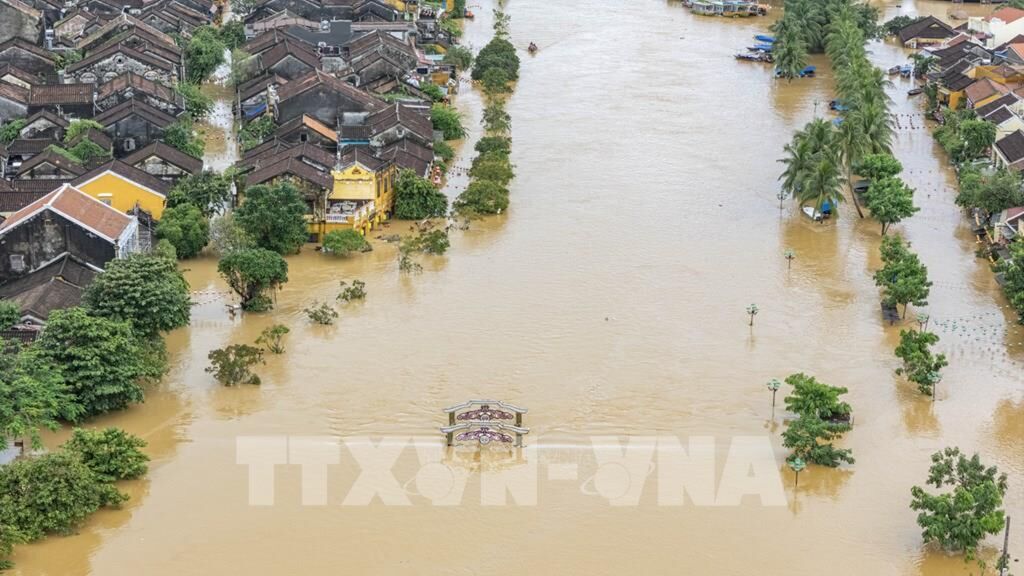 | Phố cổ Hội An, Đà Nẵng bị ngập sâu trong mưa lũ lịch sử. |