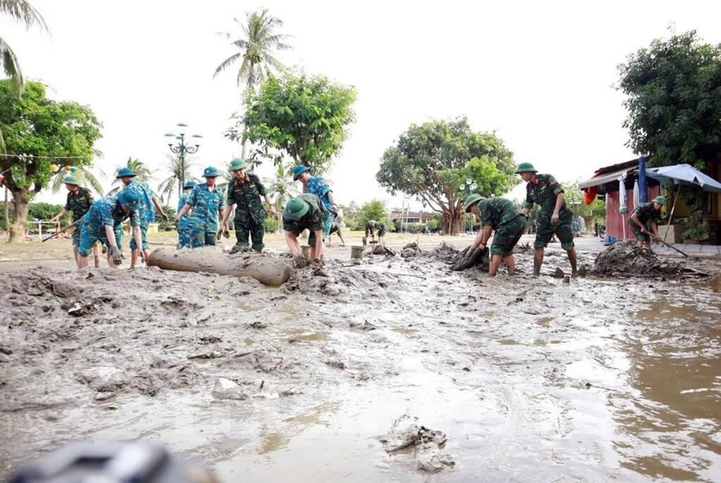 | Bộ chỉ huy quân sự thành phố Đà Nẵng tham gia làm sạch môi trường sau lũ tại Hội An (Đà Nẵng) |