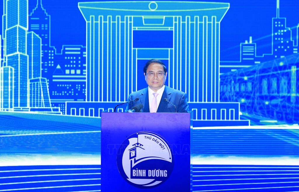 | Thủ tướng Phạm Minh Chính phát biểu tại Hội nghị công bố Quy hoạch và Xúc tiến đầu tư tỉnh Bình Dương. |