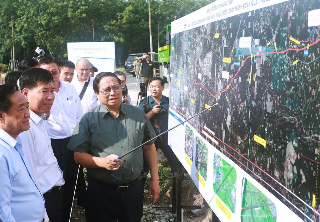 | Thủ tướng Phạm Minh Chính kiểm tra hướng tuyến dự án cao tốc Thành phố Hồ Chí Minh – Thủ Dầu Một – Chơn Thành. |