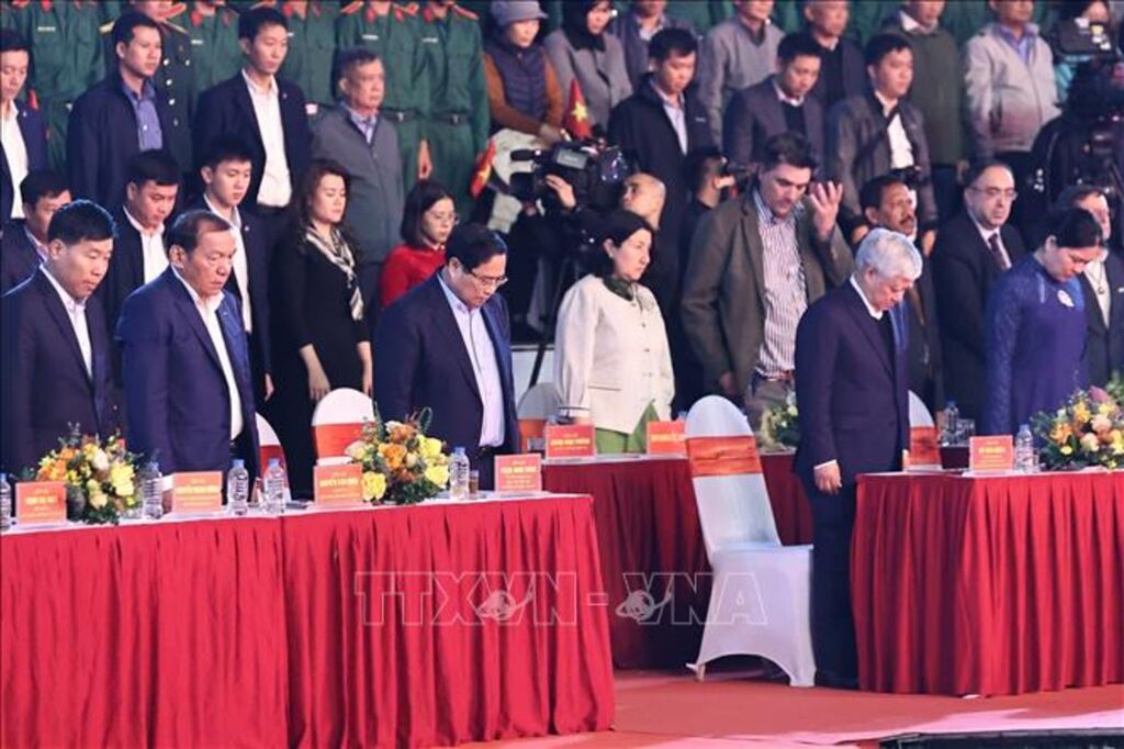 | Thủ tướng Phạm Minh Chính và các đại biểu tưởng niệm đồng bào bị thiệt mạng do bão lũ. |