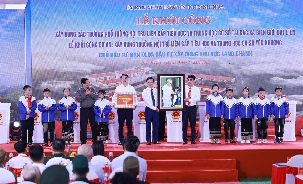 Sáng 9/11, tại xã Yên Khương, tỉnh Thanh Hóa, Ủy viên Bộ Chính trị, Thủ tướng Chính phủ Phạm Minh Chính dự Lễ khởi công đồng loạt xây dựng 72 trường phổ thông nội trú liên cấp Tiểu học và Trung học cơ sở tại các xã biên giới đất liền.