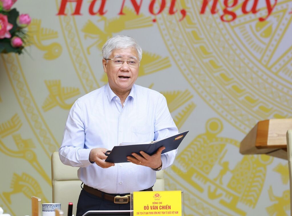 | Chủ tịch Uỷ ban Trung ương MTTQ Việt Nam Đỗ Văn Chiến phát biểu. |
