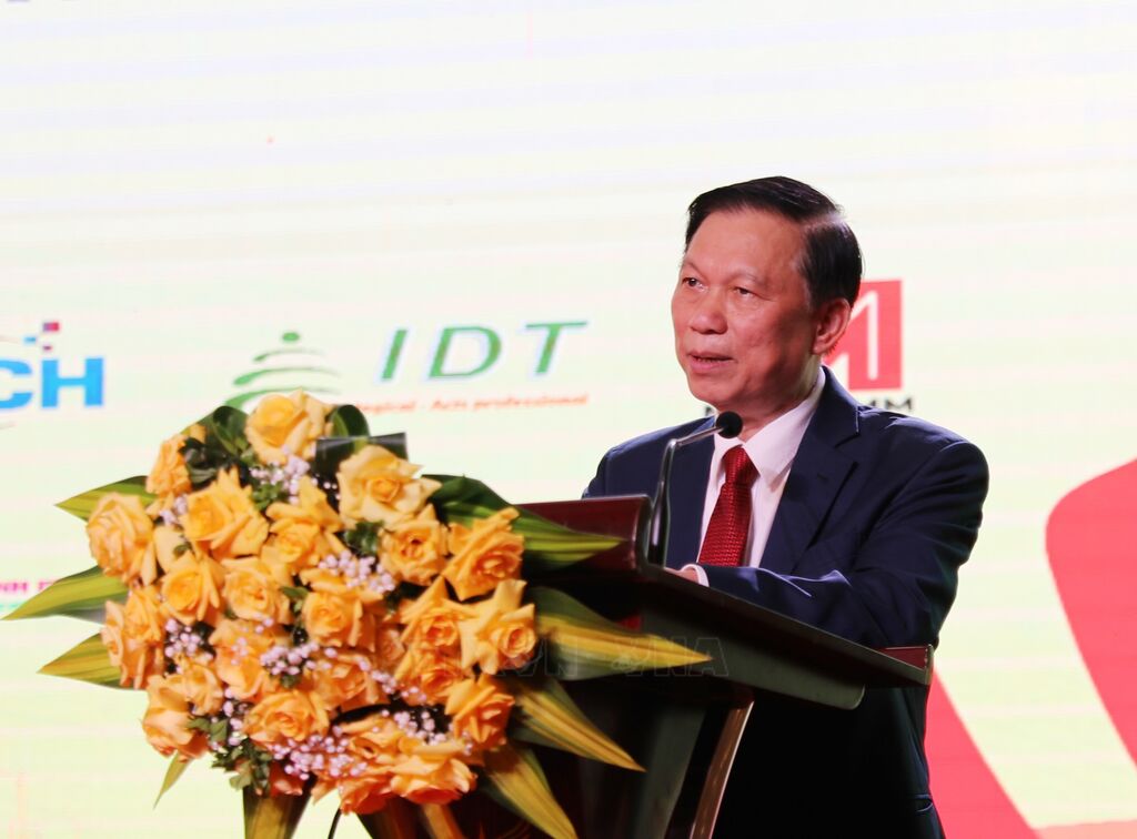 | Chủ tịch Hội Tin học Y tế Việt Nam Trần Quý Tường phát biểu khai mạc Hội thảo. |