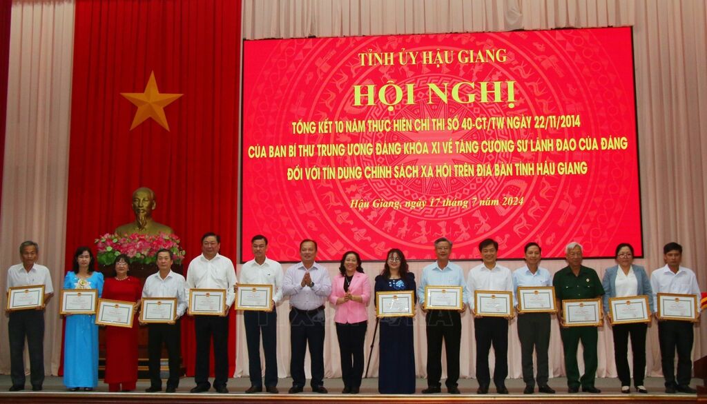 Ngày 17/7, tỉnh Hậu Giang tổ chức Hội nghị tổng kết 10 năm thực hiện Chỉ thị số 40-CT/TW ngày 22/11/2014 của Ban Bí thư về tăng cường sự lãnh đạo của Đảng đối với tín dụng chính sách xã hội trên địa bàn tỉnh Hậu Giang.
