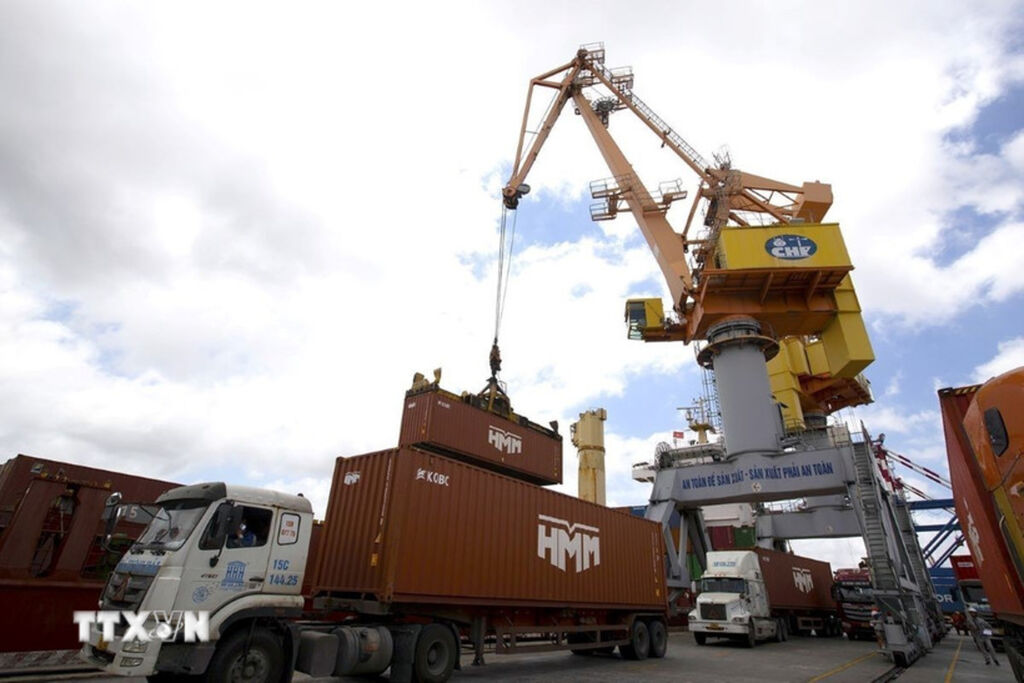 | Bốc dỡ hàng xuất khẩu tại cảng Tân Vũ, Hải Phòng. |
