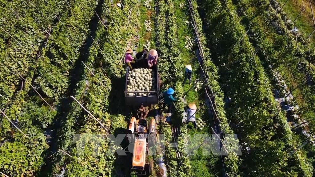 | Nông dân xã Ba Gia, tỉnh Quảng Ngãi thu hoạch dưa được trồng theo tiêu chuẩn nông nghiệp sạch. |