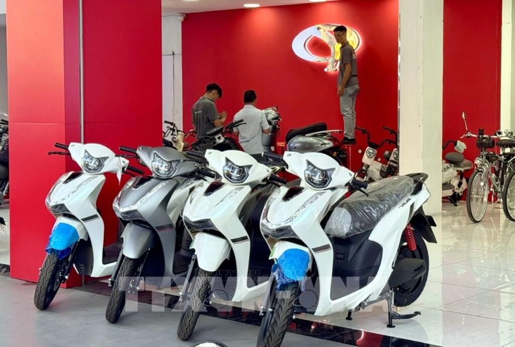 | Cửa hàng xe máy điện trên đường Lý Thường Kiệt mới khai trương nhằm thích ứng linh hoạt trước biến động của thị trường nhiên liệu. Ảnh: Thanh Vũ-TTXVN |