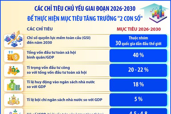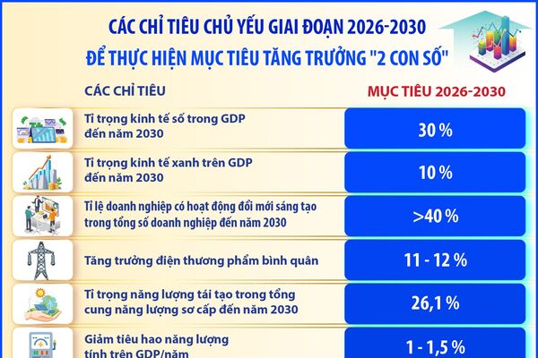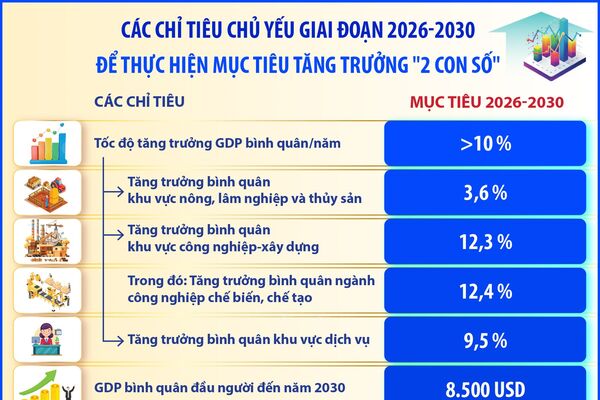 CÁC CHỈ TIÊU CHỦ YẾU GIAI ĐOẠN 2026-2030 ĐỂ THỰC HIỆN MỤC TIÊU TĂNG TRƯỞNG "2 CON SỐ" (Phần 3 và hết)