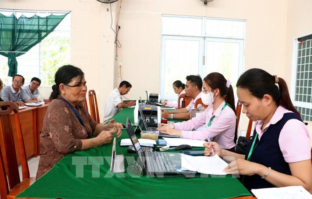 | Người dân đến giao dịch tại điểm giao dịch xã Hòa Bình, thuộc Phòng giao dịch Ngân hàng Chính sách xã hội Trà Ôn, tỉnh Vĩnh Long. |