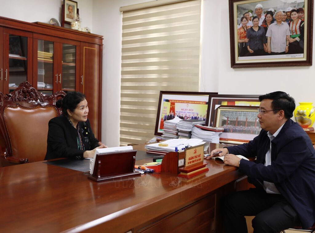 | Ủy viên Trung ương Đảng, Bí thư Tỉnh ủy Lai Châu Giàng Páo Mỷ trả lời phỏng vấn Nhà báo Nguyễn Việt Dũng, Trưởng Cơ quan thường trú TTXVN tại Lai Châu. |
