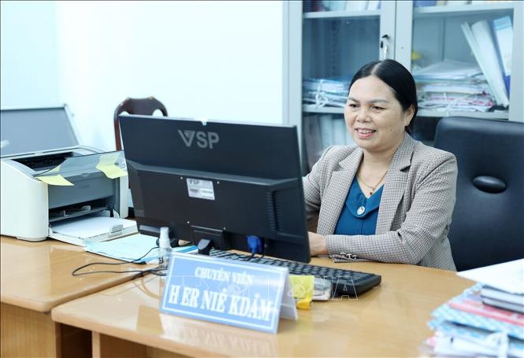 | Bà H Er Niê Kdăm, sinh năm 1971, chuyên viên Phòng Dân tộc huyện Cư M’Gar, tỉnh Đắk Lắk đã viết đơn xin nghỉ hưu trước tuổi để về với buôn làng. |