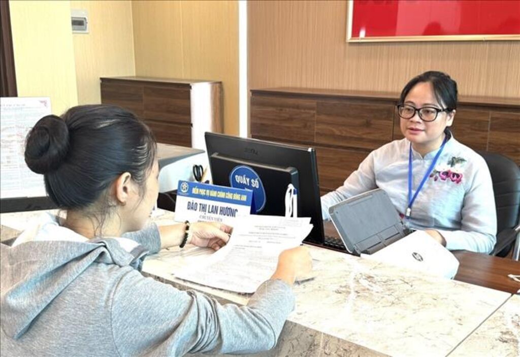 | Cán bộ Trung tâm phục vụ hành chính công phường Vĩnh Phúc, tỉnh Phú Thọ giải quyết thủ tục hành chính cho người dân. |