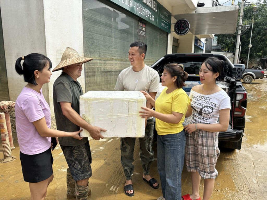 Song song với nỗ lực cứu hộ, hàng chục bếp ăn của người dân và các nhóm từ thiện được dựng lên. Những suất cơm nóng, chai nước sạch, gói mì được trao tận tay bà con vùng bị ngập lụt. Chị Nguyễn Thị Hồng, nhóm thiện nguyện ở xã Vị Xuyên (Tuyên Quang) xúc động chia sẻ: “Bà con nhiều nơi bị cô lập, không thể tự nấu ăn, chúng tôi đã duy trì mỗi ngày 500 suất cơm miễn phí. Nhìn mọi người có cơm nóng ăn, ai cũng thấy ấm lòng, quên hết mệt nhọc”.