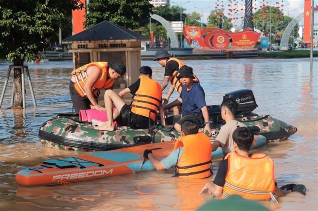 Trong khi đó, nhiều khu vực ở Thái Nguyên nước lũ dâng ngập ngang mái nhà. Nhiều gia đình, trong đó có cả người già và trẻ em đã phải dìu nhau lên mái nhà tránh lũ và chờ đợi các đội cứu hộ trợ giúp. Hàng trăm chiến sĩ thuộc các lực lượng đã không quản ngại vất vả, khó khăn, ngâm mình trong nước suốt hàng giờ để tìm cách đưa người dân ra khỏi những khu vực bị cô lập hoặc chuyển lương thực tới các gia đình chưa thể di dời. Những hình ảnh xúc động của những người lính trong bộ quân phục sũng nước cõng cụ già, hay những bàn tay kéo xuồng giữa dòng nước xiết đã trở thành biểu tượng đẹp của lòng quả cảm và trách nhiệm. Đó không chỉ là hành động cứu người, mà là sự hóa thân của mệnh lệnh từ trái tim “Vì nhân dân phục vụ”.