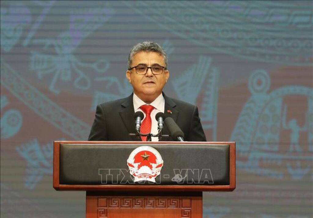 | Ngài Saadi Salama, Đại sứ Palestine tại Việt Nam, Trưởng đoàn Ngoại giao phát biểu chúc mừng. |