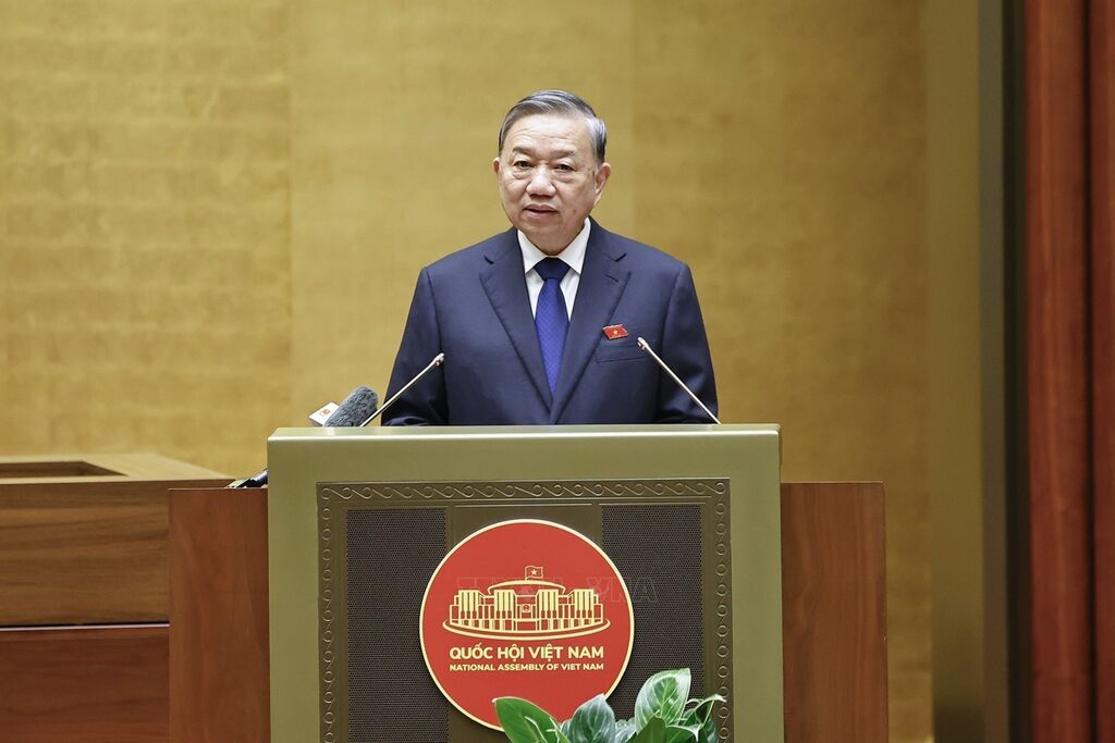 Tiếp tục chương trình Kỳ họp thứ 10, Quốc hội khoá XV, chiều 4/11/2025, Quốc hội họp phiên toàn thể tại hội trường để nghe Tổng Bí thư Tô Lâm phát biểu chỉ đạo, trao đổi thông tin về một số điểm mới và những định hướng quan trọng trong dự thảo văn kiện trình Đại hội đại biểu toàn quốc lần thứ XIV của Đảng. Ảnh: Doãn Tấn - TTXVN