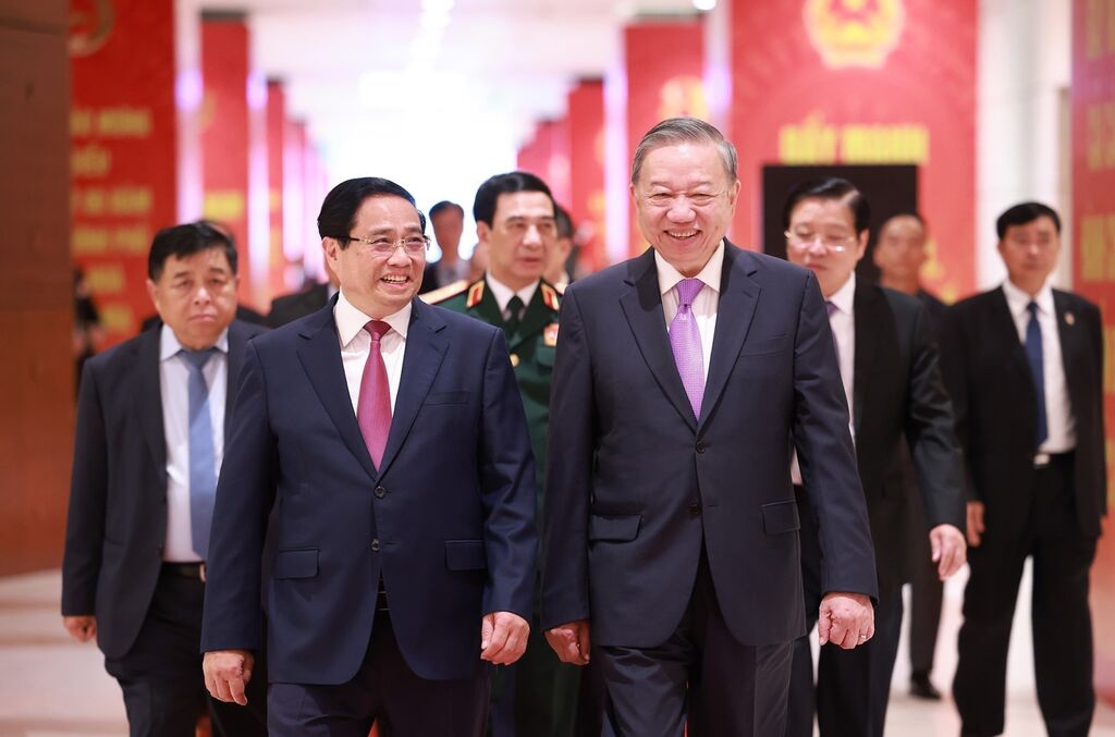 | Thủ tướng Phạm Minh Chính đón Tổng Bí thư Tô Lâm đến dự Lễ kỷ niệm 80 năm thành lập Chính phủ . |