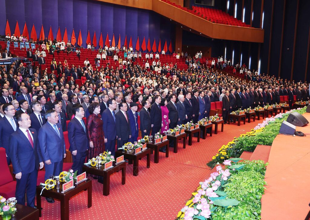 Thay mặt Ban Chấp hành Trung ương Đảng, Bộ Chính trị, Ban Bí thư, Tổng Bí thư nhiệt liệt chào mừng và chúc sức khoẻ các đồng chí lão thành cách mạng, Mẹ Việt Nam Anh hùng, Anh hùng lực lượng vũ trang, Anh hùng lao động, các vị khách quý cùng 550 đại biểu dự đại hội, những đảng viên ưu tú, đại diện cho gần nửa triệu đảng viên của Đảng bộ thành phố Hà Nội.