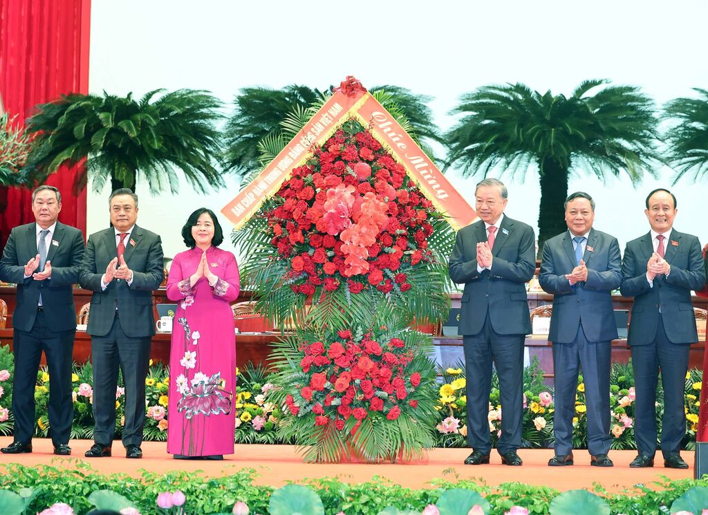 | Tổng Bí thư Tô Lâm tặng lẵn hoa chúc mừng Đại hội |