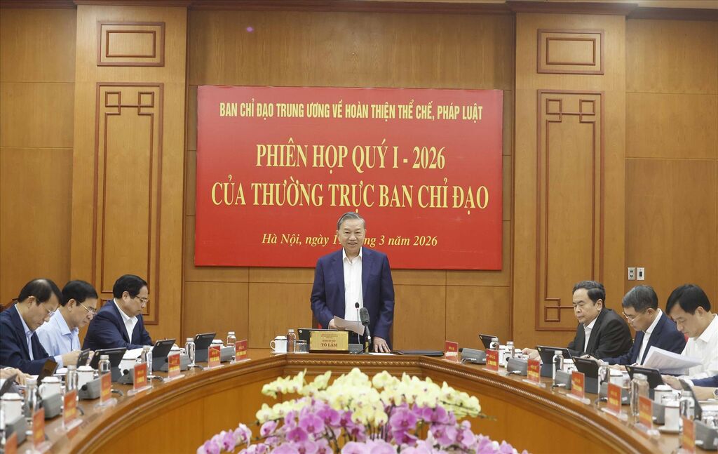 Chiều 11/3, tại Trụ sở Trung ương Đảng, Tổng Bí thư Tô Lâm, Trưởng Ban Chỉ đạo Trung ương về hoàn thiện thế chế và pháp luật chủ trì cuộc họp quý 1 năm 2026 của Thường trực Ban Chỉ đạo.