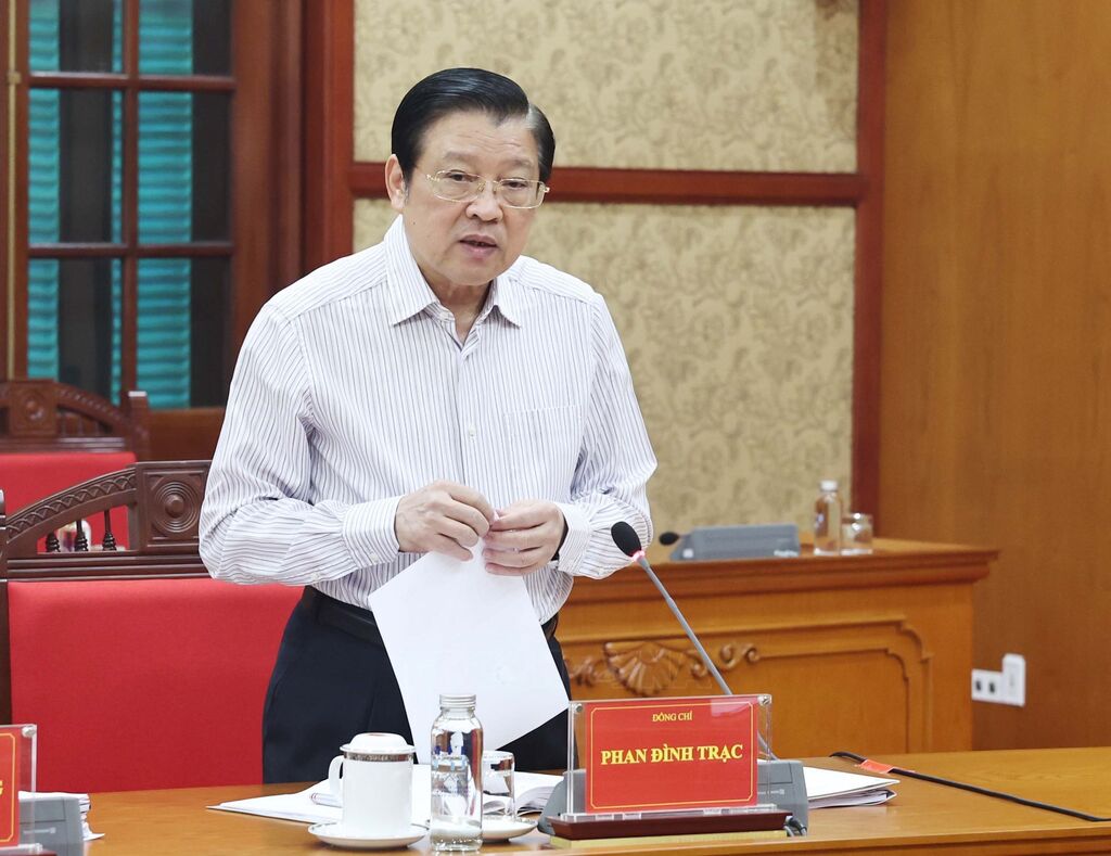 | Đồng chí Phan Đình Trạc, Uỷ viên Bộ Chính trị, Bí thư Trung ương Đảng, Trưởng Ban Nội chính Trung ương, Phó Trưởng ban Thường trực Ban Chỉ đạo phát biểu. |