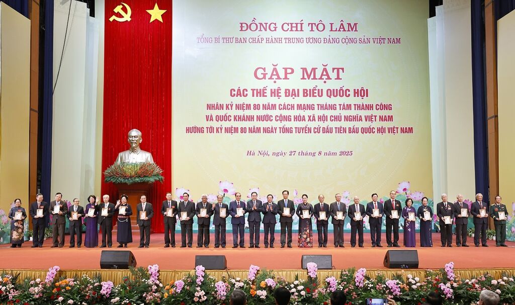 Nhân kỷ niệm 80 năm Cách mạng Tháng Tám thành công (19/8/1945 - 19/8/2025) và Quốc khánh nước Cộng hòa xã hội chủ nghĩa Việt Nam (2/9/1945 - 2/9/2025), hướng tới kỷ niệm 80 năm Ngày Tổng tuyển cử đầu tiên bầu Quốc hội Việt Nam (6/1/1946 - 6/1/2026), sáng 27/8, tại Hà Nội, Tổng Bí thư Tô Lâm chủ trì cuộc gặp mặt các thế hệ đại biểu Quốc hội qua các thời kỳ.