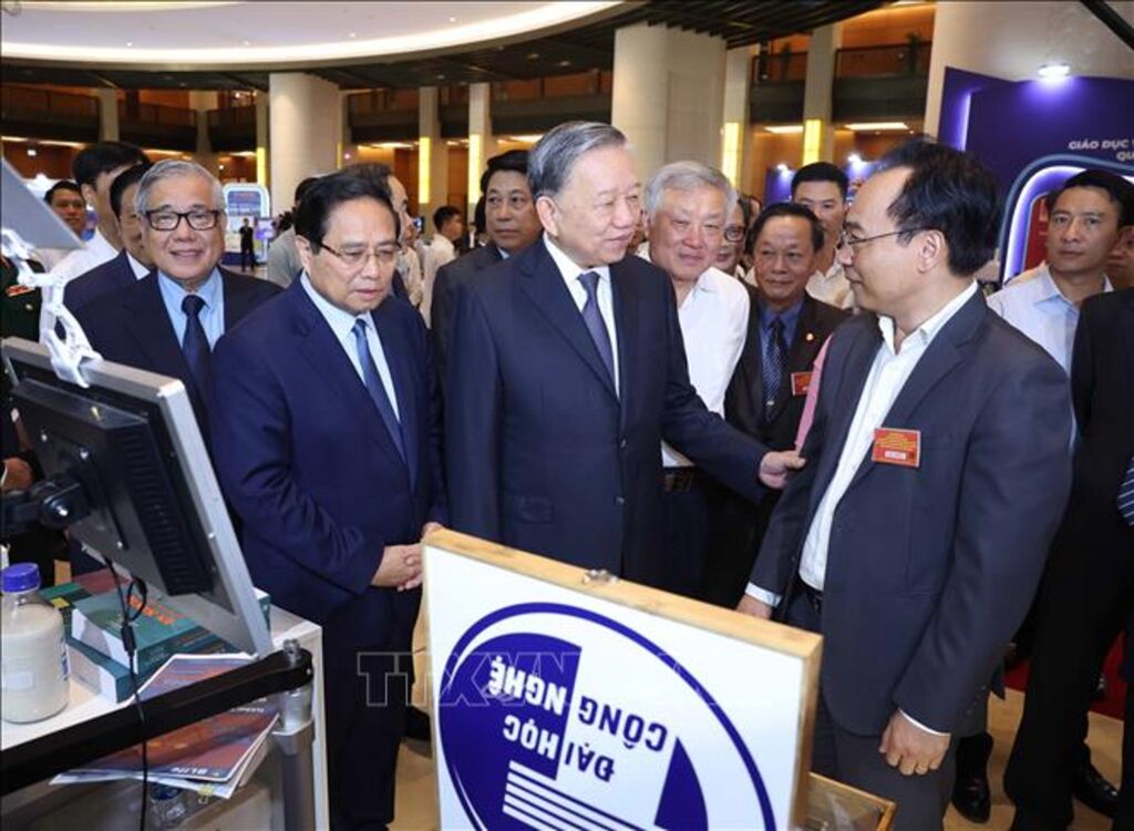 | Tổng Bí thư Tô Lâm và các đồng chí Lãnh đạo Đảng, Nhà nước tham quan triển lãm “Những thành tựu nổi bật trong ngành y tế và giáo dục”. |