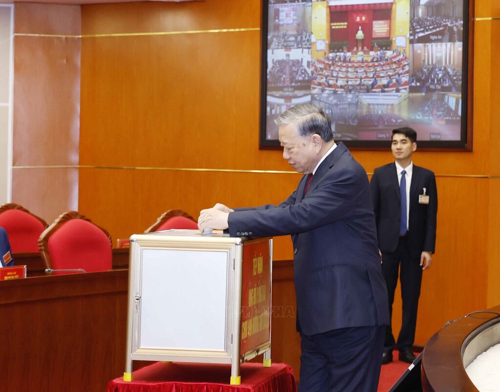 Sáng 24/11/2025, tại Trụ sở Trung ương Đảng, Đại biểu tham dự Hội nghị toàn quốc công tác kiểm tra, giám sát, thi hành kỷ luật của Đảng năm 2025 và nhiệm kỳ Đại hội khoá XIII của Đảng quyên góp ủng hộ đồng bào các tỉnh bị bão lũ. Ảnh: TTXVN
