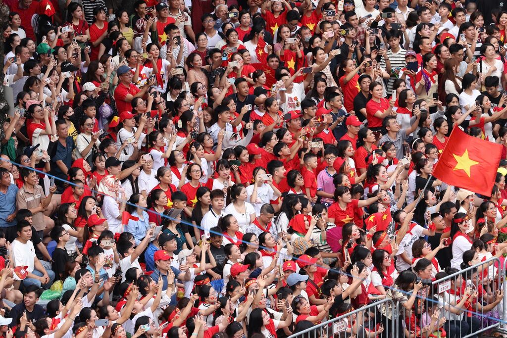 | Hàng vạn nhân dân tập trung xung quanh khu vục Quảng trường Ba Đình để theo dõi tổng duyệt lễ diễu binh, diễu hành sự kiện A80 |