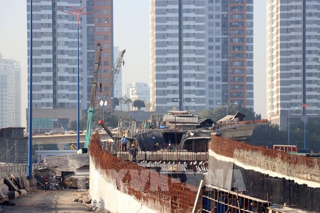 | Thi công các gói thầu còn lại của dự án nút giao thông An Phú. Ảnh: Tiến Lực - TTXVN |