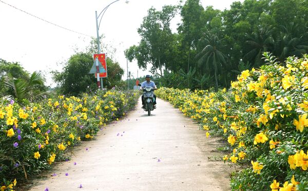 | Tuyến đường hoa ở huyện nông thôn mới Cầu Kè (Trà Vinh). |