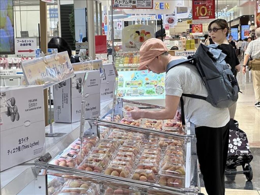 | Khách tiêu dùng Nhật Bản chọn mua quả vải Việt Nam. Ảnh: Nguyễn Tuyến – PV TTXVN tại Nhật Bản |