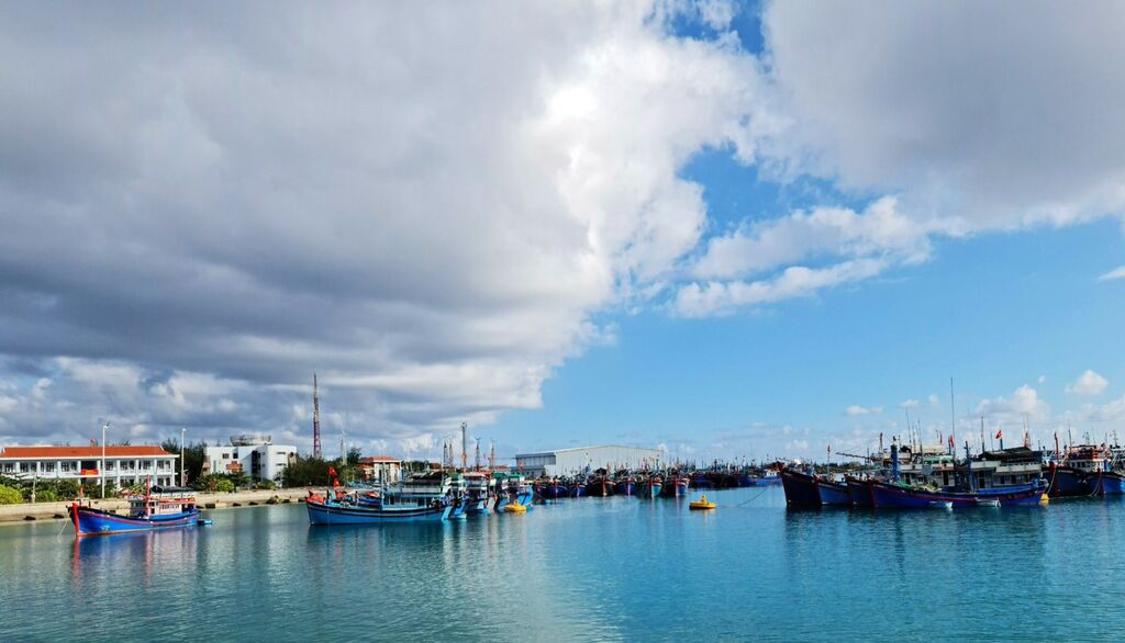 | Tàu cá của ngư dân vào neo đậu tại âu tàu đảo Trường Sa. |