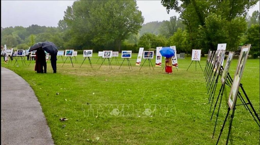 | 50 bức ảnh về con người, văn hoá và phong cảnh thiên nhiên Việt Nam của các tác giả Việt Nam và tác giả người Đức, Götz Peter Reichelt được sắp xếp thành hình chữ V-N, tượng trưng cho tên gọi Việt Nam ở không gian ngoài trời của Vườn Thế giới Berlin. Ảnh: Phương Hoa - PV TTXVN tại Đức |
