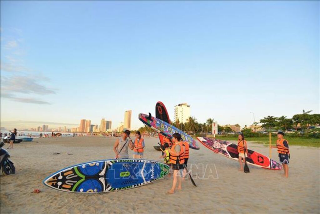| Du khách trải nghiệm các dịch vụ thể thao biển ở Đà Nẵng. |