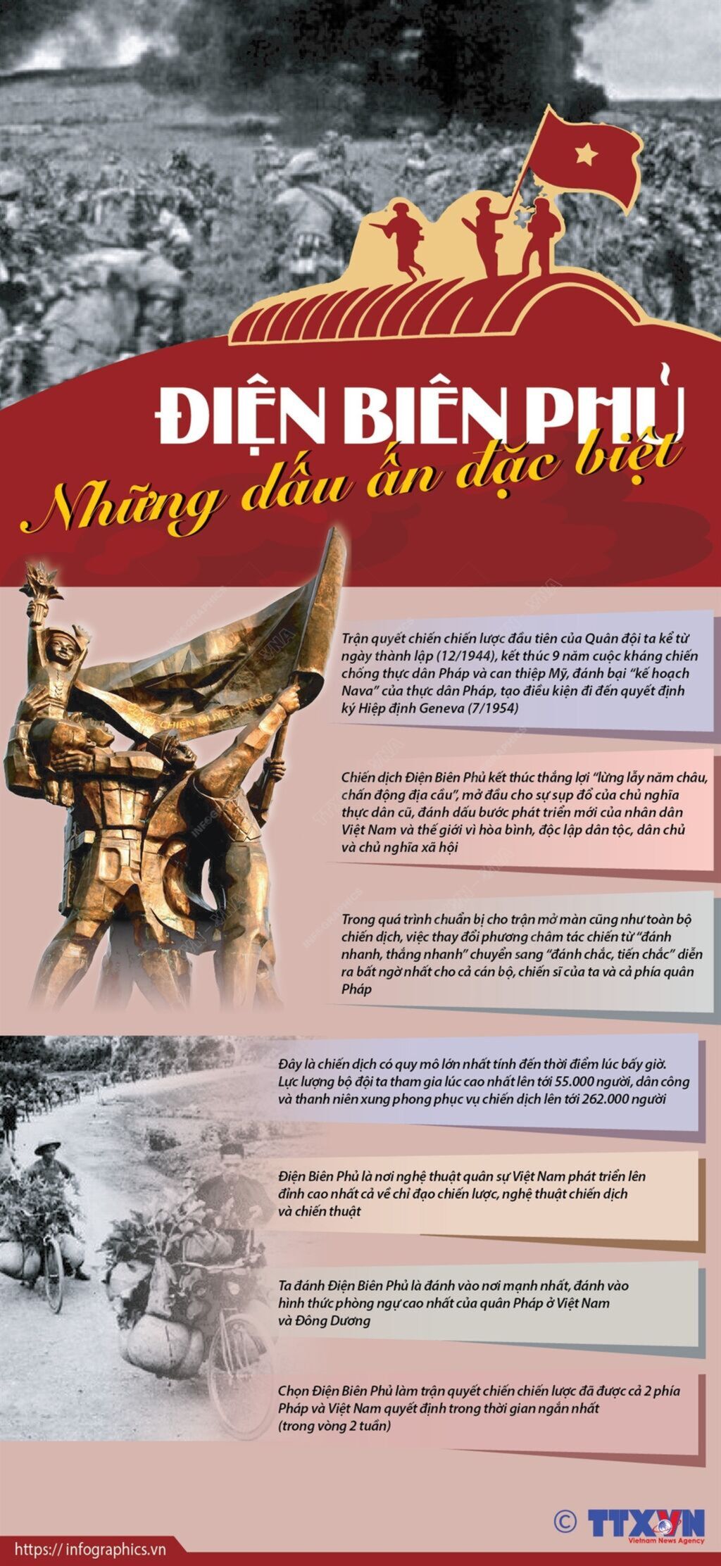 | 17 giờ 30 phút ngày 7/5/1954, lá cờ “Quyết chiến - Quyết thắng” của Quân đội nhân dân Việt Nam tung bay trên nóc hầm De Castries, kết thúc 56 ngày đêm chiến đấu kiên cường, dũng cảm, sáng tạo của quân và dân Việt Nam. |