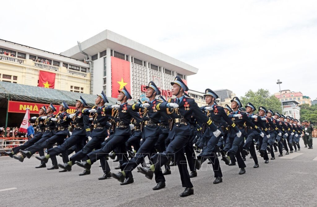 | Khối sĩ quan Cảnh sát biển diễu binh qua đường Lê Duẩn, đoạn ga Hà Nội. |