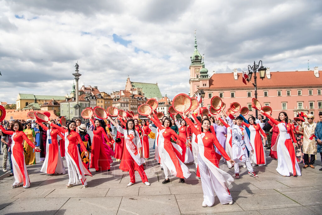 | Chị Trần Thúy Hòa Victoria (hàng đầu) tham gia chương trình "Việt phụ bộ hành" - Lan tỏa văn hóa Việt tại Ba Lan, nhân kỷ niệm 80 năm Cách mạng tháng Tám thành công và Quốc khánh 2/9 vào tháng 8/2025. |