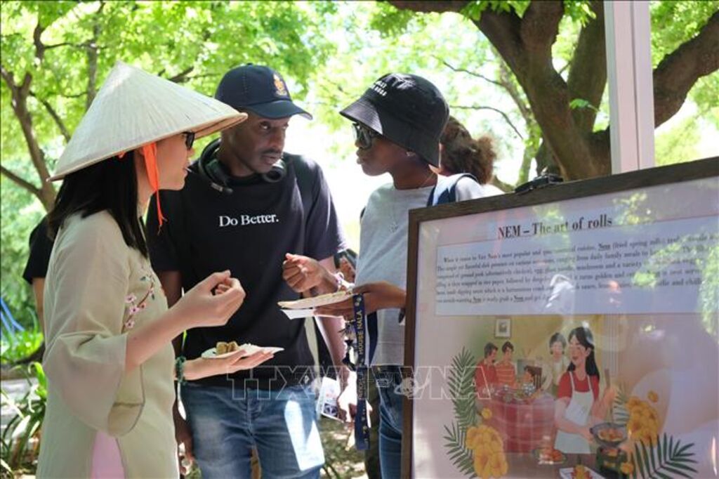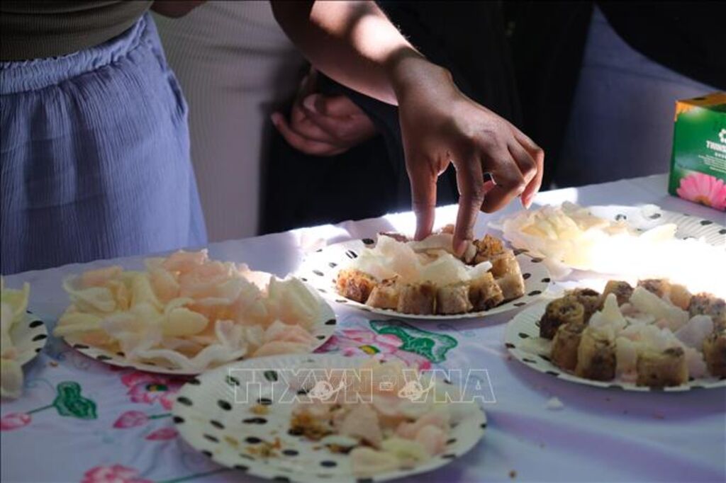 | Món nem rán, bánh phồng tôm giới thiệu về văn minh lúa nước và đường bờ biển dài của Việt Nam tại lễ kỷ niệm. Ảnh: Hồng Minh - PV TTXVN tại Nam Phi |