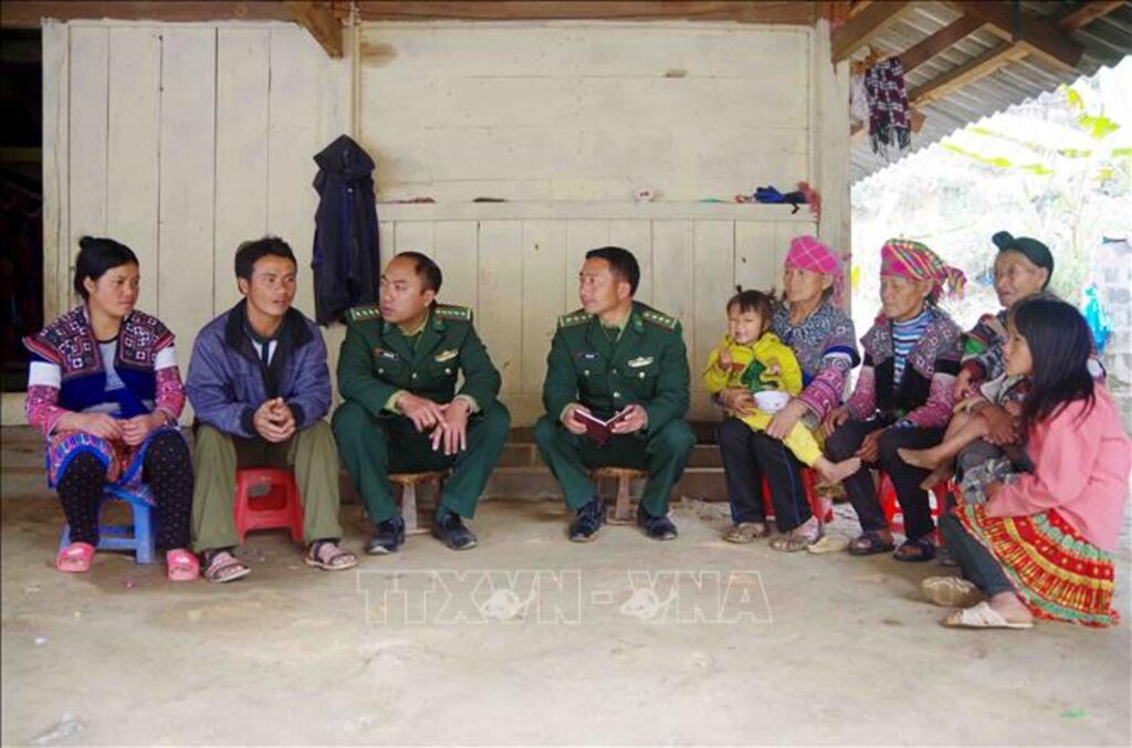 | Cán bộ, chiến sỹ Đồn Biên phòng Dào San, huyện Phong Thổ, tỉnh Lai Châu thường xuyên xuống bản tuyên truyền cho nhân dân về giữ gìn an ninh trật tự, phương thức phát triển sản xuất, nâng cao năng suất cây trồng, vật nuôi. |