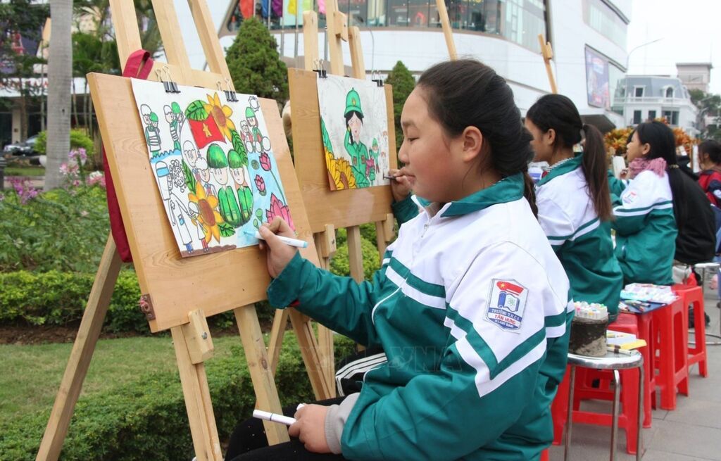 | Thiếu nhi Bắc Giang tham gia Cuộc thi vẽ tranh với chủ đề “Bộ đội Cụ Hồ trong đôi mắt trẻ thơ”. |