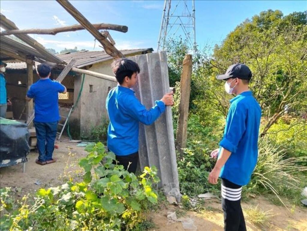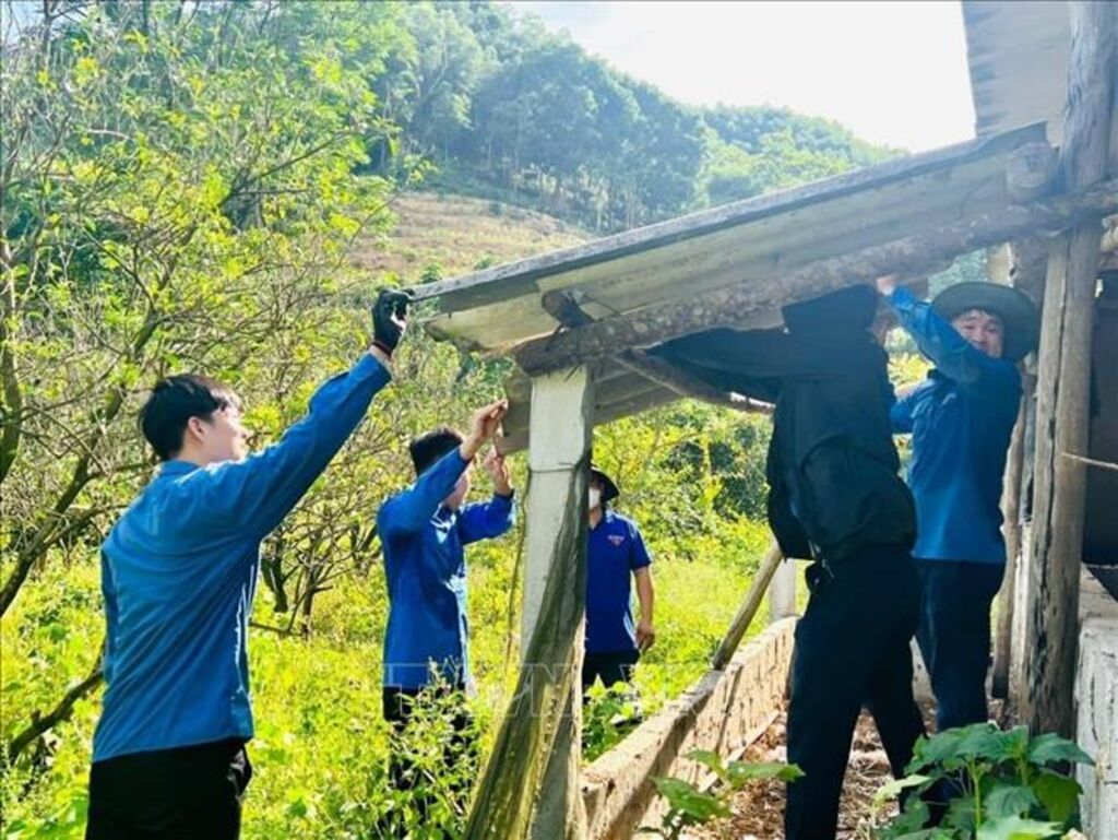 | Đoàn viên, thanh niên Hà Tĩnh hỗ trợ di dời chuồng trại trong hành lang tuyến đường dây 500kV mạch 3. |
