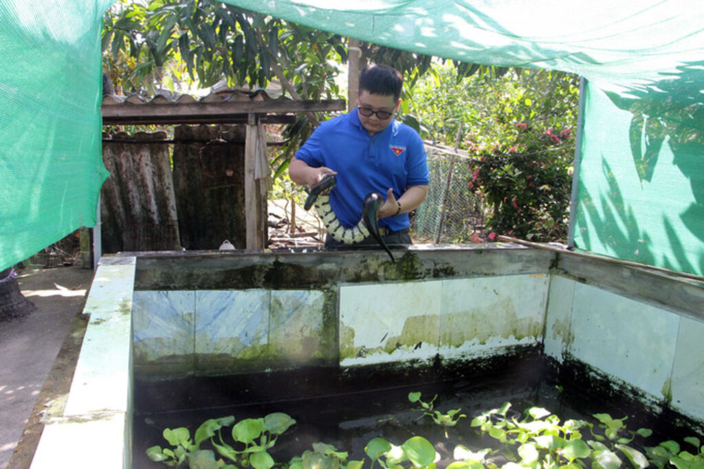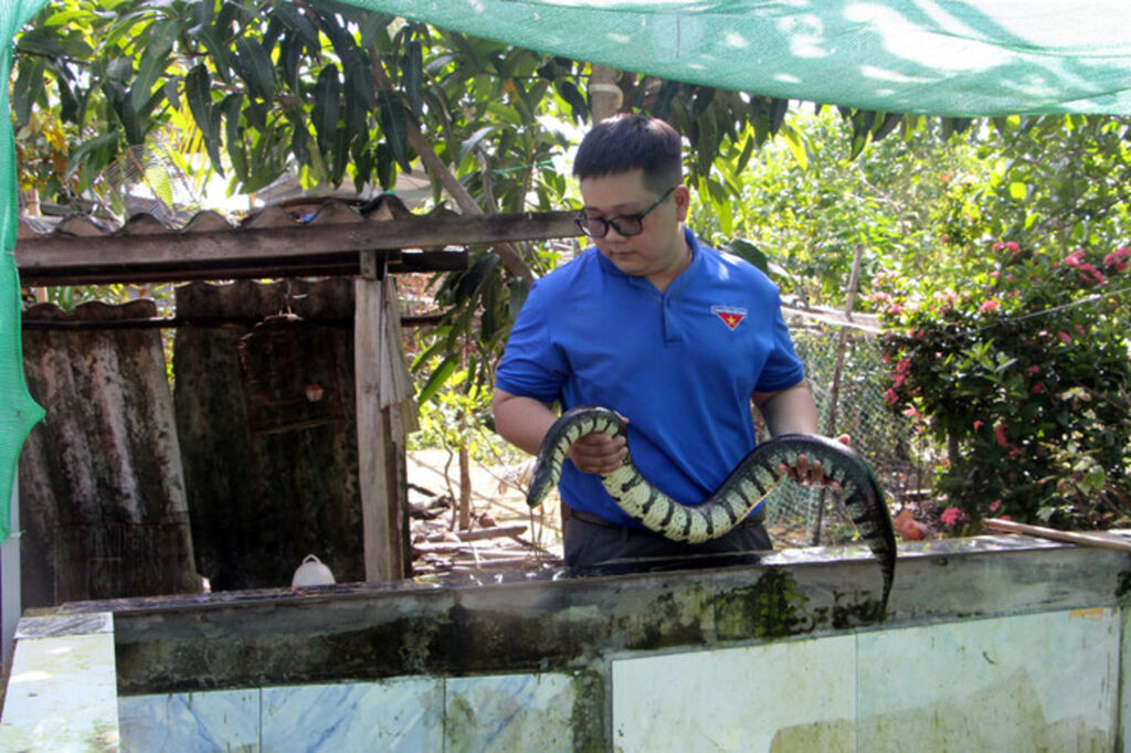 Cuối năm 2023, anh Bảo mạnh dạn vay 15 triệu đồng từ quỹ “Giúp nhau lập nghiệp” của Đoàn Thanh niên, cộng với số tiền đã tích lũy để mở rộng quy mô. Anh bộc bạch: “15 triệu có thể không lớn với nhiều người, nhưng với một thanh niên tay trắng như tôi lúc bấy giờ, đó là nguồn động lực rất lớn để thực hiện ước mơ”. Với số vốn vay này cùng số tiền tích góp được anh đã cải tạo hồ nuôi, nâng tổng số rắn lên 25 cặp giống. Anh cũng thể hiện tư duy kinh tế sắc bén khi lựa chọn nuôi rắn ri tượng để bán con giống, một hình thức mang lại hiệu suất kinh tế cao hơn so với nuôi lấy thịt.