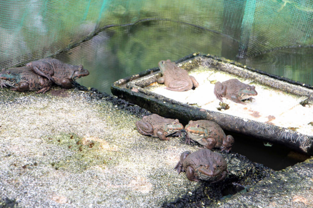 | Khu vực ao nuôi ếch thương phẩm của anh Lê Duy Bảo. |