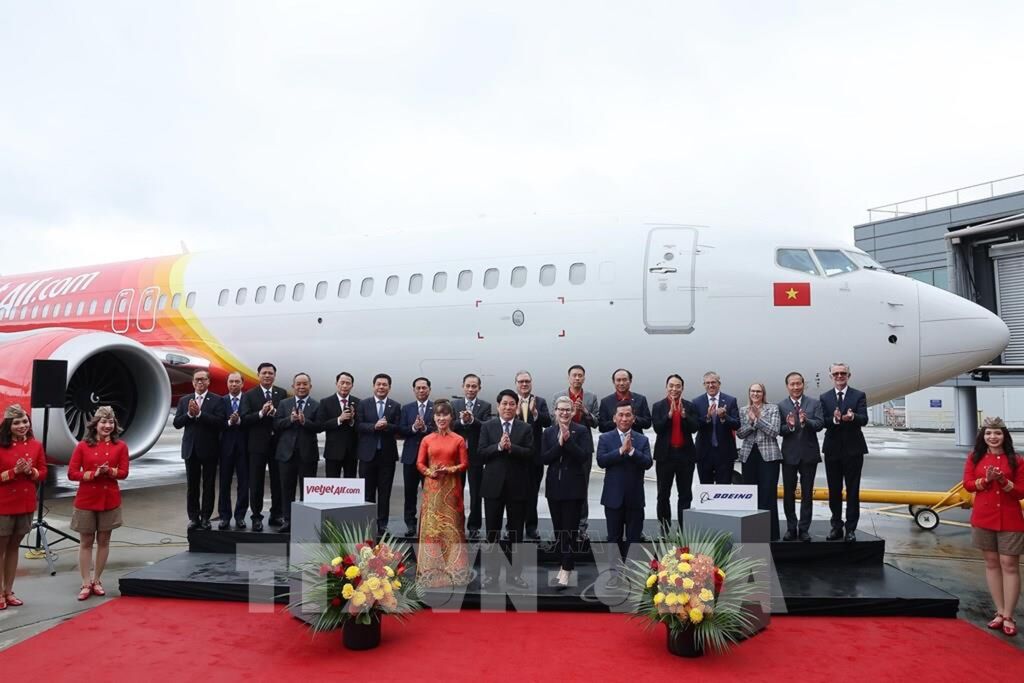 | Chủ tịch nước Lương Cường chứng kiến Lễ bàn giao máy bay Boeing 737-8 đầu tiên giữa Tập đoàn Boeing và Hãng hàng không Vietjet Air vào sáng 21/9/2025, giờ địa phương (đêm 21, rạng sáng 22/9, giờ Hà Nội), tại thành phố Seattle (Hoa Kỳ). Ảnh: Lâm Khánh – TTXVN |